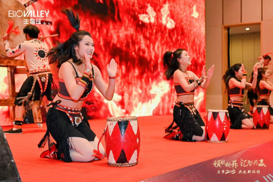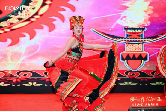 年會(huì)之上,舞臺(tái)流光溢彩、節(jié)目精彩紛呈。開場以云南特色太陽鼓舞拉開恢弘序幕。舞者身姿矯健,用力量之美點(diǎn)燃現(xiàn)場。一聲聲鼓樂振奮人心,一句句吶喊響徹會(huì)場,預(yù)示著生物谷藥業(yè)未來征程廣闊浩瀚。
