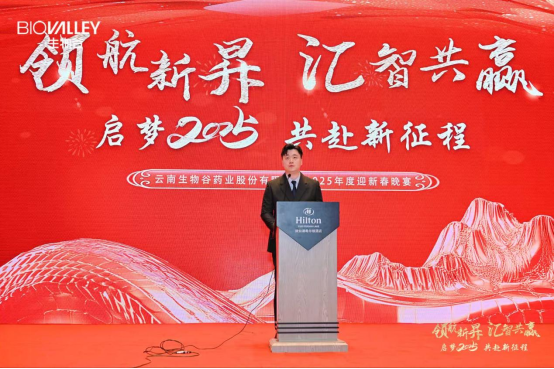 展望2025,不負(fù)未來征途。云南生物谷藥業(yè)股份有限公司董事長林弘威先生為盛典致辭。他代表公司董事會(huì),向所有奮斗在一線的同仁表示深切問候,并向支持公司的各級政府、各界領(lǐng)導(dǎo)表示崇高的敬意和誠摯的新春祝福。致辭中,他講述了生物谷藥業(yè)2025年整體戰(zhàn)略規(guī)劃,強(qiáng)調(diào)生產(chǎn)安全與藥品質(zhì)量是企業(yè)的發(fā)展基石,生物谷必將嚴(yán)格遵守生產(chǎn)流程管理制度,加強(qiáng)質(zhì)量管理體系建設(shè),推行綠色低碳理念,全鏈條培育和發(fā)展中藥材產(chǎn)業(yè),做高質(zhì)量的民族藥、中醫(yī)藥,踐行生物谷藥業(yè)可持續(xù)發(fā)展之路。